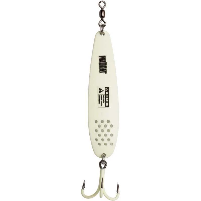 Cuiller à silure de 90gr avec des trous pour des turbulences supplémentaires. En raison de sa forme émaciée, elle est idéale pour les eaux rapides. Livrée avec un hameçon triple incroyablement fort et piquant, en taille: 3/0. A-STATIC : un revêtement en caoutchouc pour minimiser le champ mangnétique qui effraie le silure. Remarque : le revêtement en caoutchouc peut s’user pendant l’utilisation.