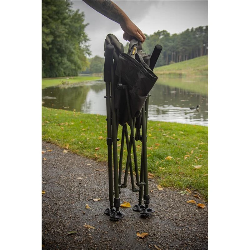Deux accoudoirs Duplon et des pieds réglables avec des pieds en boue solaire font de cette chaise un perchoir confortable pour tout pêcheur. Livré dans un sac de rangement camouflage.