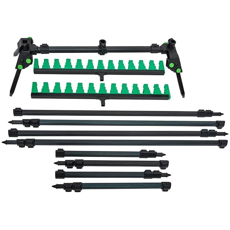 Support kit luxe, pouvant s’adapter à n’importe quelle situation au bord de l’eau ! Vous pourrez l’utiliser de manière verticale ou horizontale. Livré avec 2 supports kits de 12 loges, ainsi que 8 pieds, pour pouvoir s’adapter à n’importe quel type de berge. Idéal pour la championnats ou grandes compétitions !